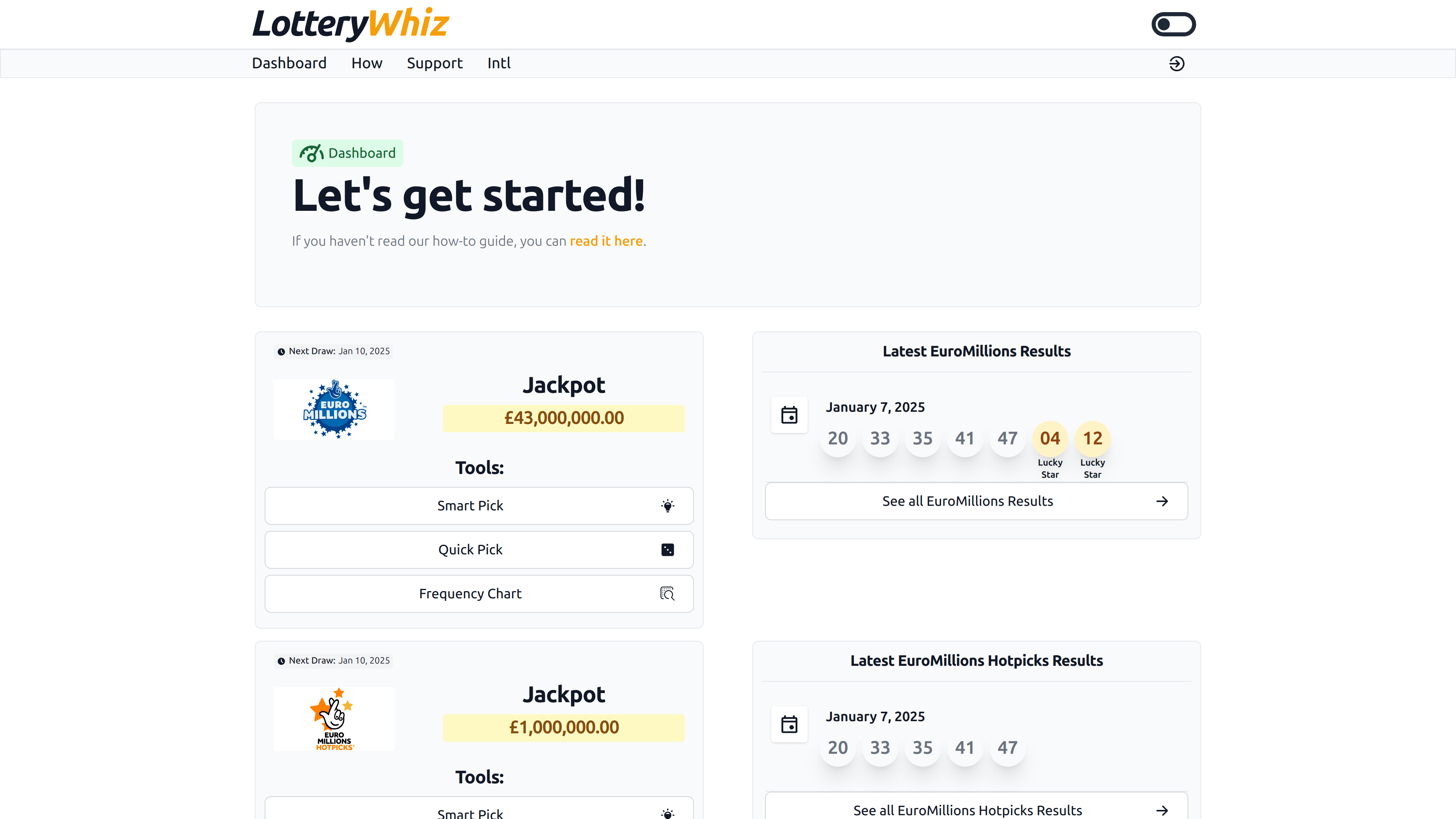 Start by logging into your Lottery Whiz account. If you’re new, signing up is quick and gives you instant access to our exclusive number recommendations and tools. Your personalized dashboard includes: