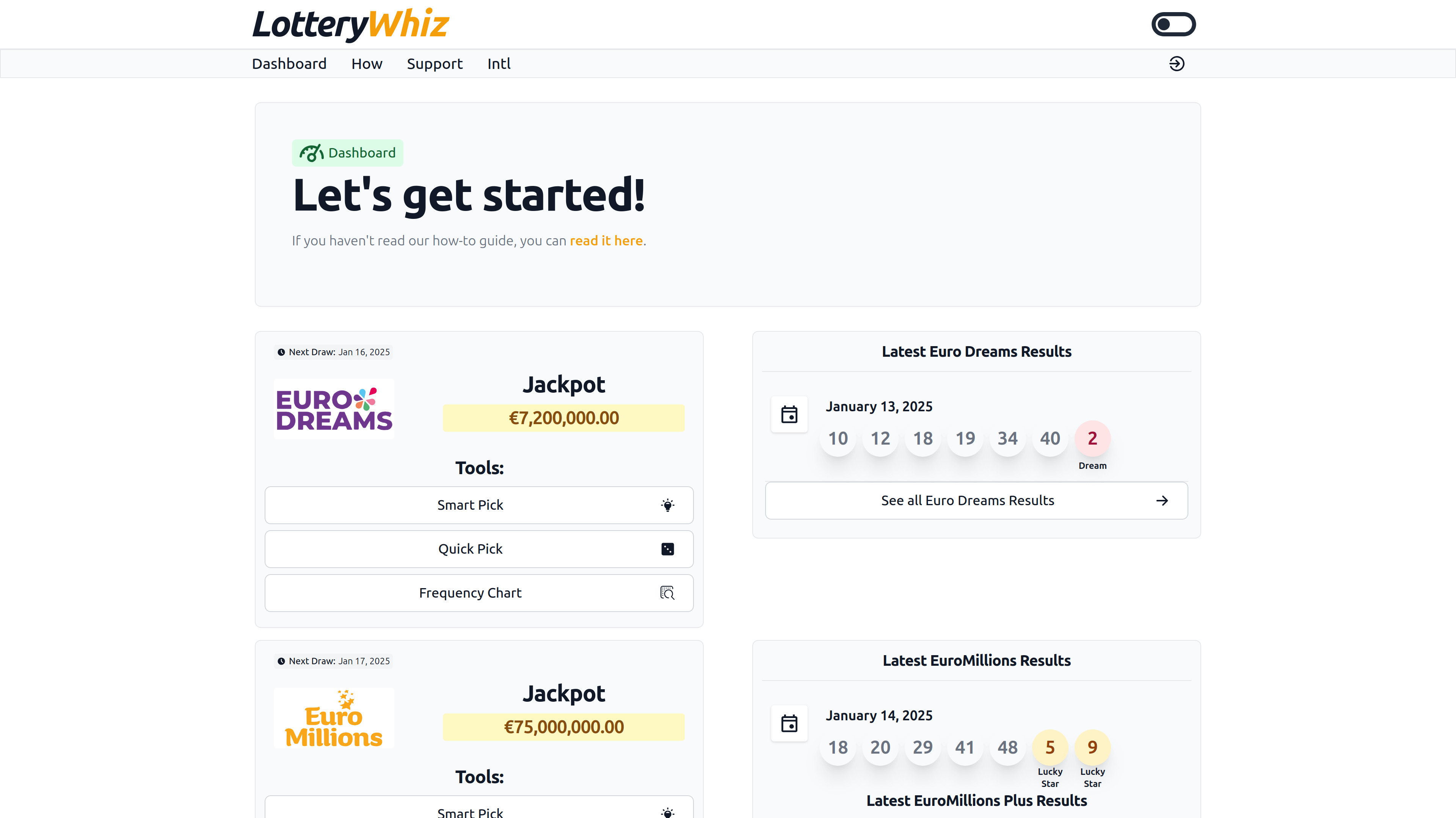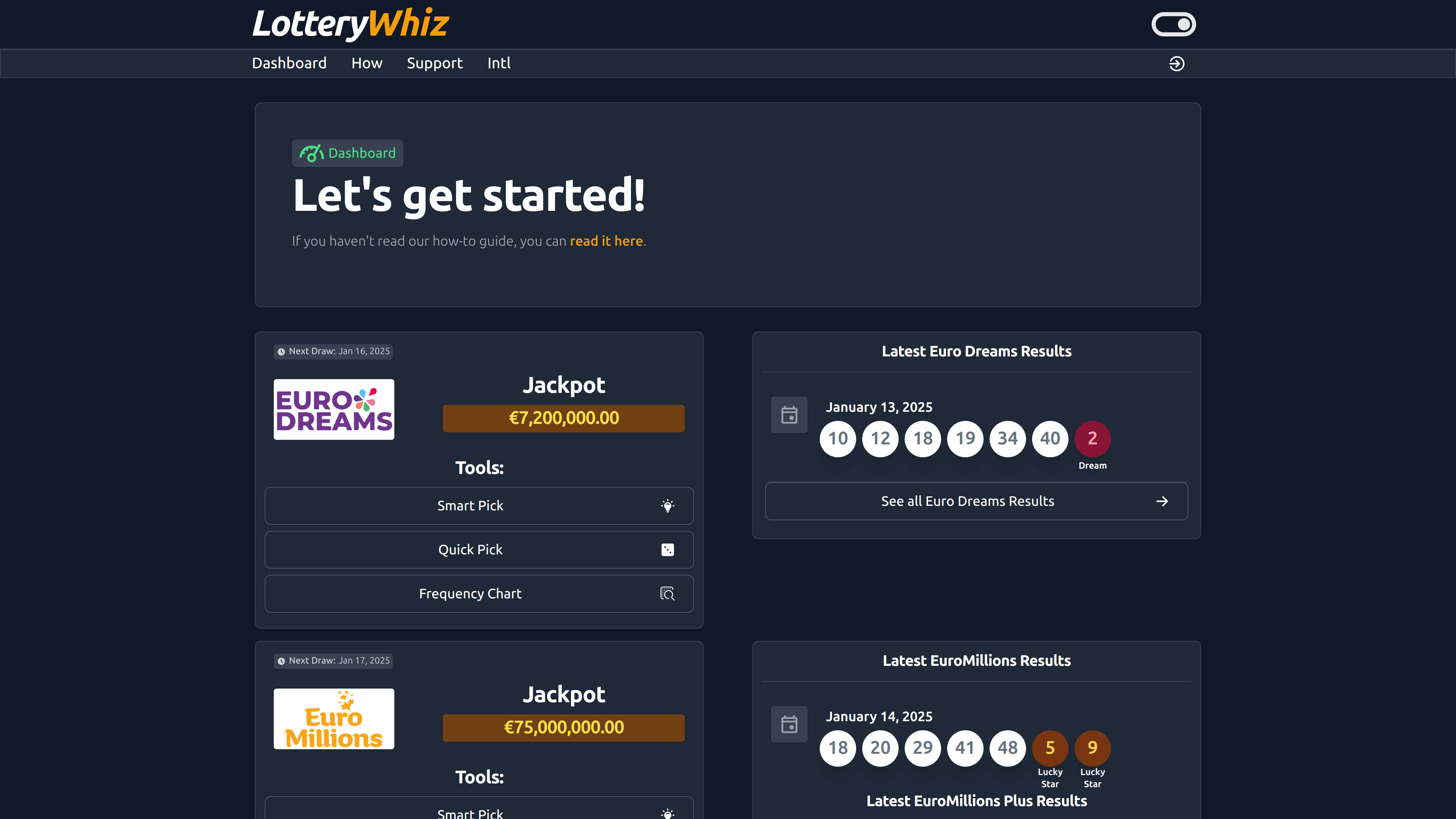 Start by logging into your Lottery Whiz account. If you’re new, signing up is quick and gives you instant access to our exclusive number recommendations and tools. Your personalized dashboard includes: