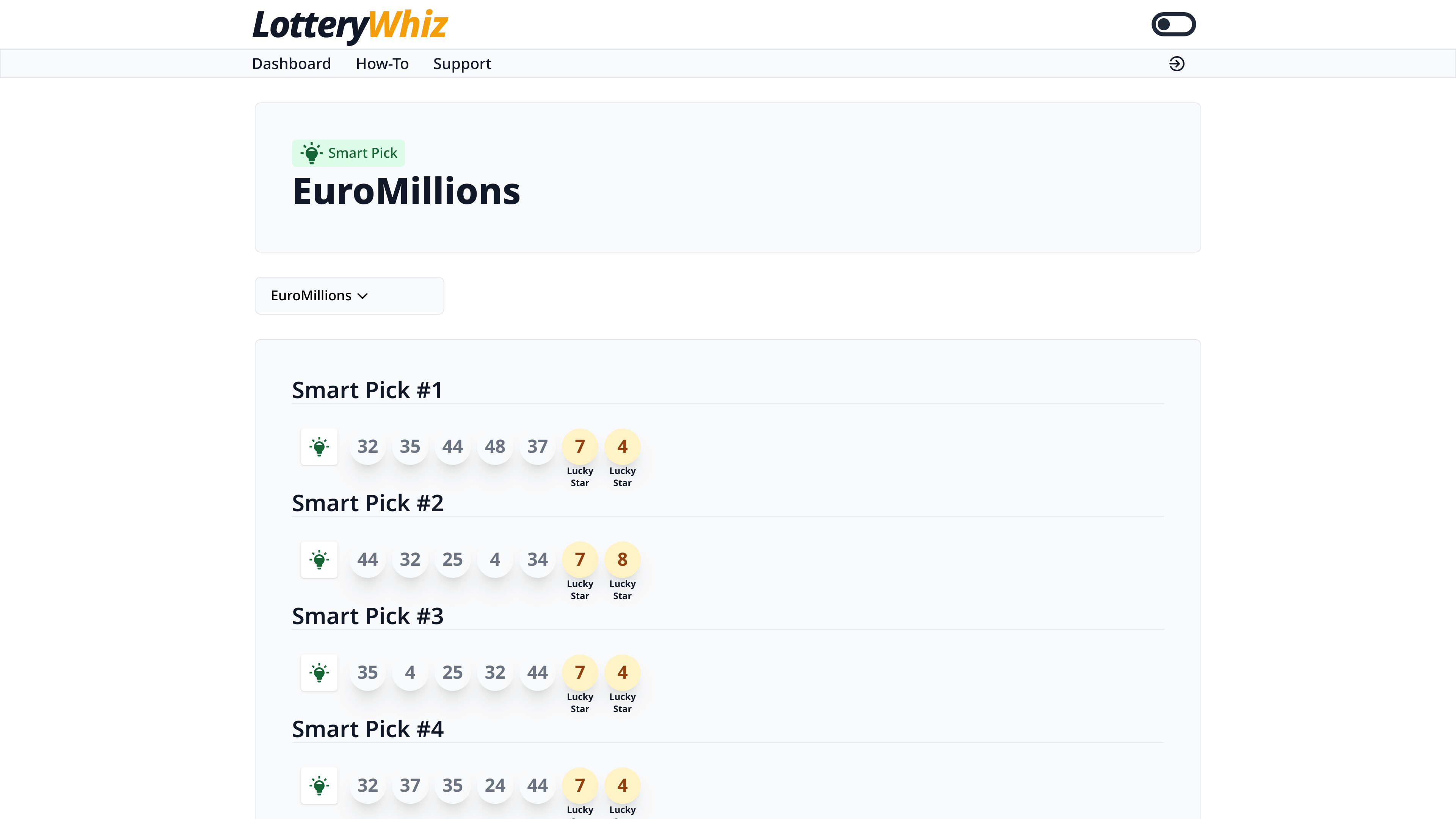 Behind the scenes, LotteryWhiz uses some pretty sophisticated mathematical algorithms and AI to analyze 30+ years of past lottery data and to predict future outcomes. And it does that for every single game in Ireland. We're talking about cutting edge AI, advanced statistics and probability theories that could easily be overwhelming. There's just no way to grasp it without being a mathematician. For normal people, members like me, all of this complexity is happening in the background, automatically. I just click a button to get number recommendations for my game of choice. The dashboard is clear, the recommendations are straightforward, and everything is designed to be simple. One-click tools.